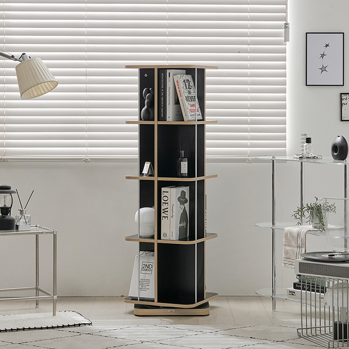 - 비앙스 VONI 자작원목 HPL 사각 인테리어 회전책장 4단 블랙
